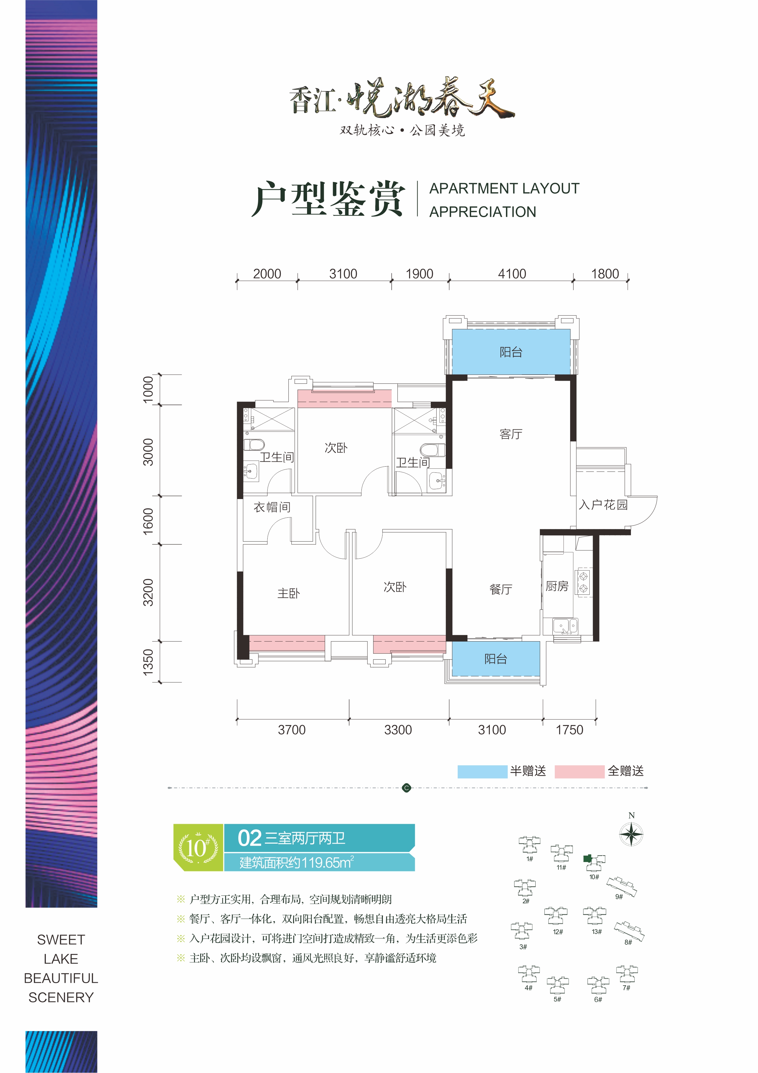 香江悦湖春天地理位置优越,双面邻河,水竹湖公园环绕;交通便利,邻近长株潭城际轻轨大丰站,公交配套丰富,未来地铁、快速公交等新型交通工具连通本项目。项目内部规划园林2.5万余平米,并配有各种休闲娱乐配套,以及双环形运动跑道,是理想的健康居住场所。小区管理方面采用智能管理系统,充分保障小区内部的安全。